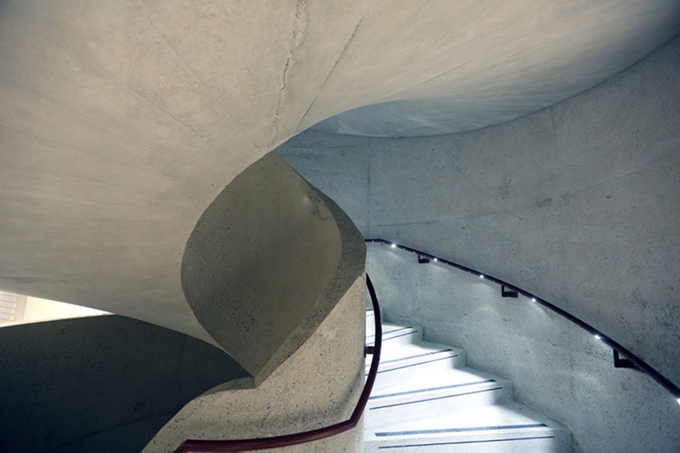 The complex geometries of the site provided a starting point for a lively arrangement of irregular floor plates, each particular to its function. Space flows freely in plan and section, with stairs turning to create meeting places at every level.