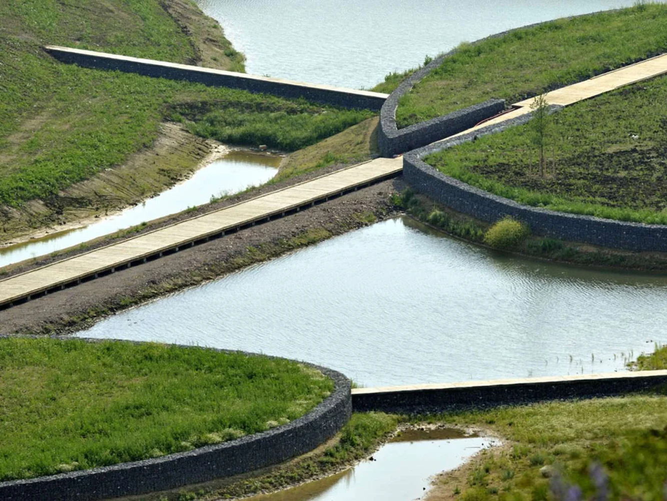 Founded in 1925, this was one of Europe’s largest coke production plants. After changes in the coal and steel industries in the late 20th century, the plant finally closed in 2002. Aquaterra is part of a much larger park project: the Parc des Iles (Islands Park) designed by the Ilex landscape design firm.