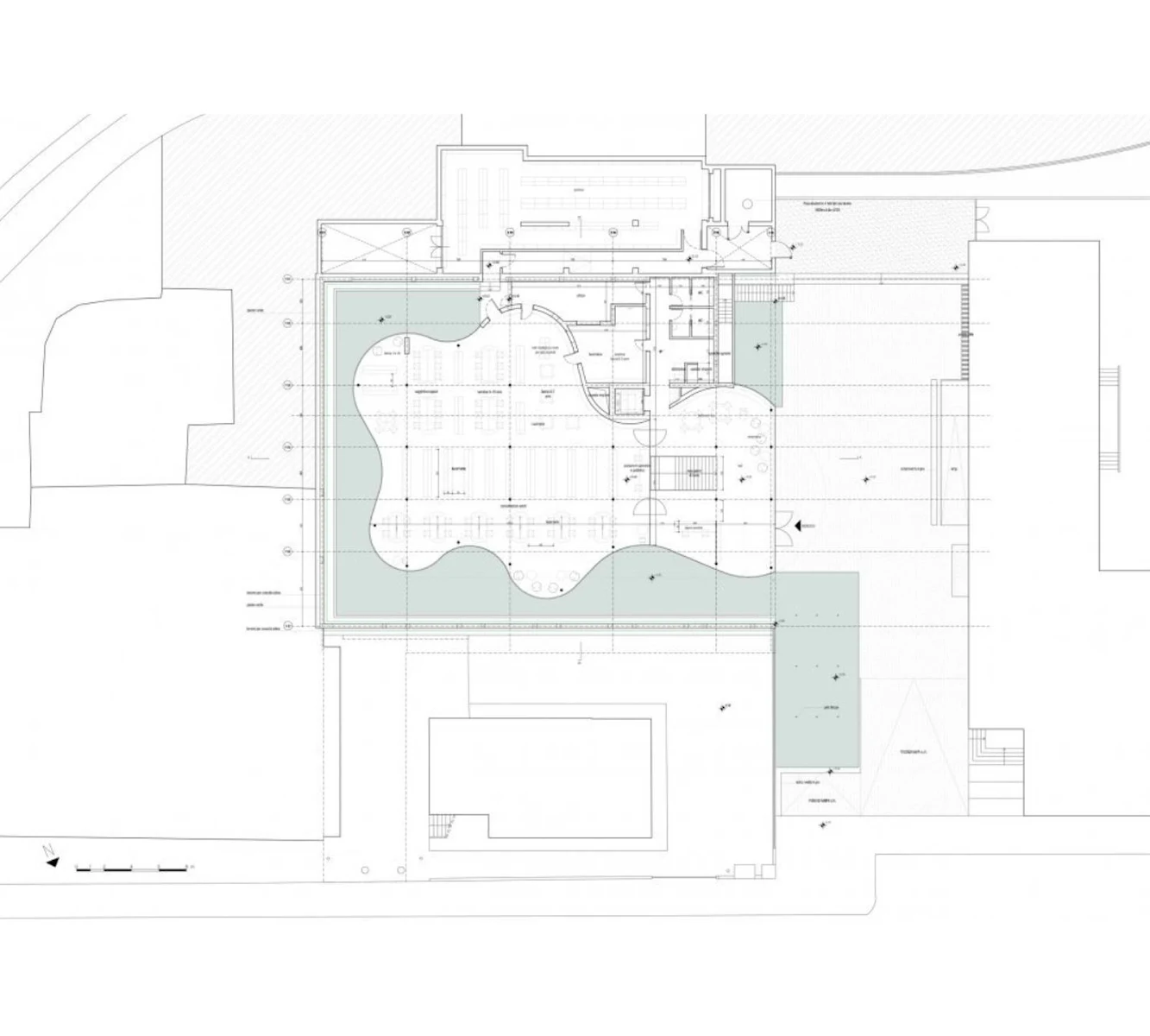 In riferimento ai recenti progetti di biblioteche che fungono da contenitori culturali che ampliano e interagiscono con funzioni diverse, anche in questo progetto si cerca di aggregare diversi spazi culturali della tipicità locale, ma in questo caso appare più il risultato di una determinazione imposta che da una soluzione progettuale ricercata mancando di una loro precisa identità e riconoscibilità.