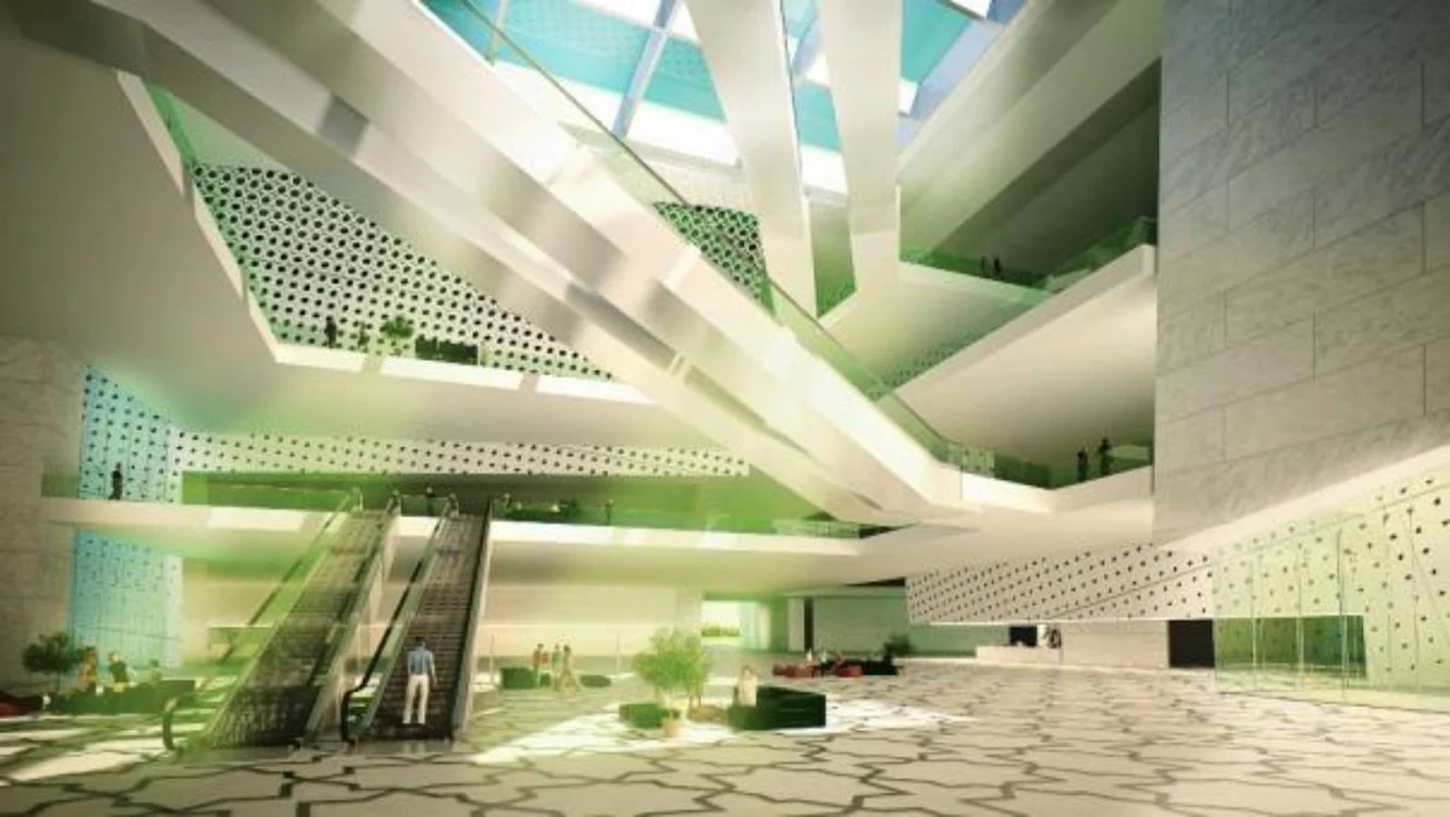 This building is based in open spaces such as atriums and circulations which conceive to the building volume, scale and dimension. the direct connection to the atrium exists as an enclosed plaza of different levels. Introduced as the fifth volume, the whole space, works as the linkage where the other volumes converge.