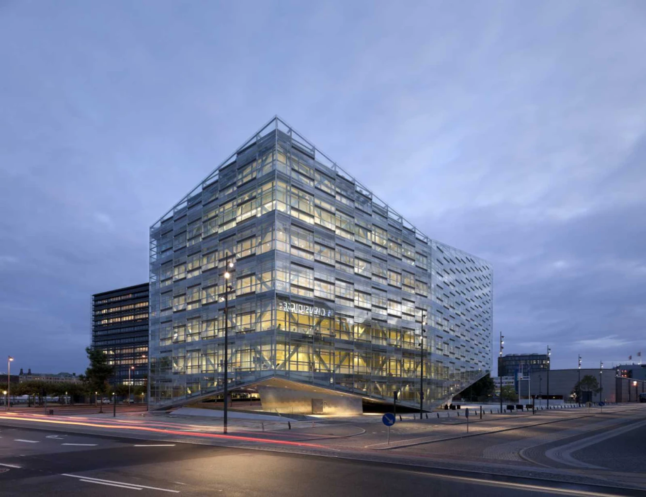 The new extension to to the financial institution Nykredit consists of a new building, the Crystal, sited northwest of the existing headquarters, called the Glass Cube, on the edge of the new waterfront and the historic Copenhagen.