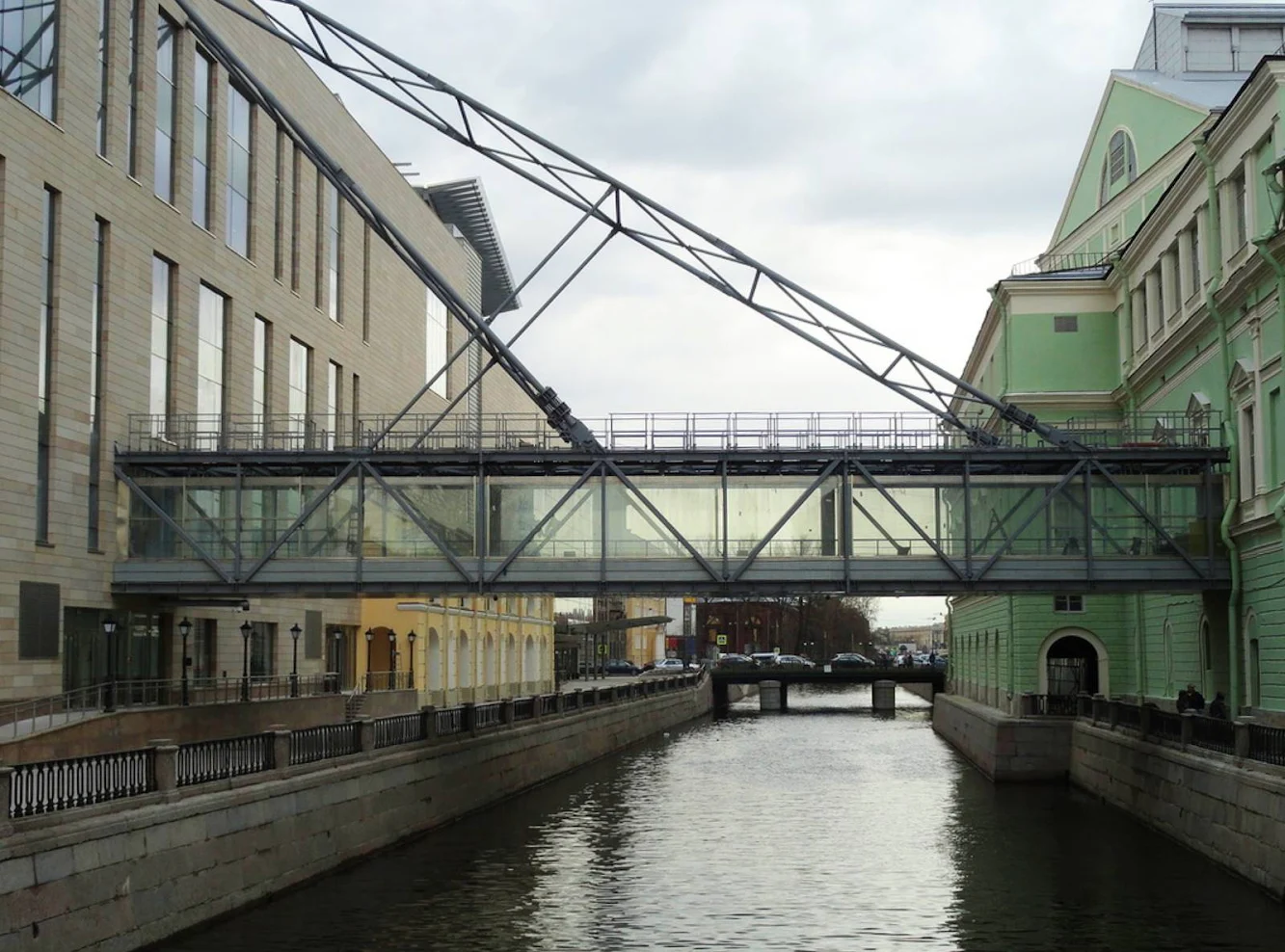 Above the base of the New Mariinsky Theatre is a gently curved metal roof enlivened by a glass canopy. the contrast in form, material and colour between the building’s base and its roof gives the building a contemporary identity rooted within the context of St. Petersburg’s exceptional architectural heritage.