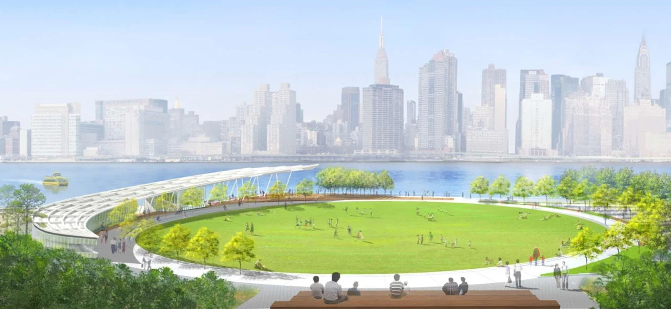 New open spaces with connections to the surrounding communities, provide access to the water’s edge and spectacular views of the Manhattan skyline. the design incorporates active and passive recreation and a broad array of sustainable initiatives, transforming Hunters Point South into a new cultural and ecological paradigm.” Thomas Balsley Associates and Weiss/Manfredi